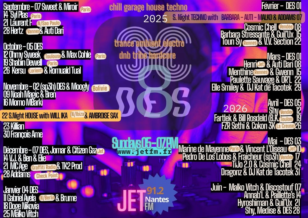 - 07.02..26 – Night 2 au studio de Jet, en direct : Techno night avec Auti, Malko, Addams, Barbara & D.E.S. Y’aura quelques invites également !