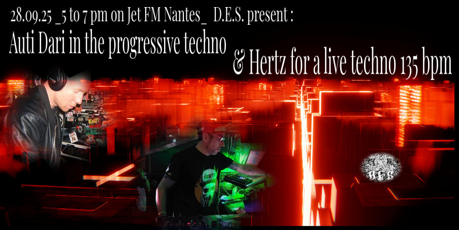D.E.S.(Deep Electronic Sound) : Deep pour sa profondeur musicale ; Electronic principalement & Sound : le Son, la Musique, le BPM, le Rythme quoi ! Celui qui nous anime depuis la nuit des temps. D.E.S. n’a pas la vocation de diffuser du son purement Indu et extrême, mais préfère naviguer entre sons Clubs et Rave. Pas de code, du moment que le son est bon, à l’écart du star-system. Donc c’est une émission créée en 2019 par Frank Smith, en tant que bénévole. Les deux premières années étaient une fréquence de deux émissions par mois, Aujourd’hui, c’est hebdomadaire, durant 2 heures. Bien souvent en direct des studios, parfois enregistrées.