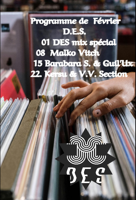 01.02.2026 _ LE MIX SPECIAL DE FEVRIER DE D.E.S. by Frank Smith ! Deep, Electro & Techno … C’est l’émission de ce dimanche , pour commencer un mois tout chaud , dans un hiver qui se termine ! Bonne écoute !!!08.02.2026 _ Malko Vitch est venu au Studio avec des super galettes ! Total Elektro bien psyché ! Des disques rares qu’il a sorti pour l’occasion ! Et pour la dernière demi-heure , il nous a dévoilé 4 tracks qu’il a produit et qu’il va sûrement sortir en collection très limitée ! C’était du lourd !