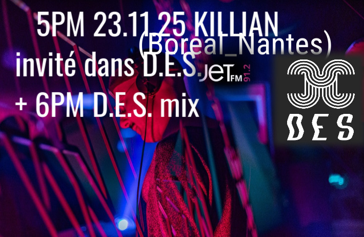 Pour ce début de mois, 2 live dj de D.E.S. , mixés au Studio de Jet fm à Nantes. Un premier de 3 heures , puis, le dimanche suivant, de 2heures ! De quoi bien t’occuper cette semaine, avec les deux liens soundcloud , car D.E.S. a également une page sur ce site, dédié à la musique Electronique !