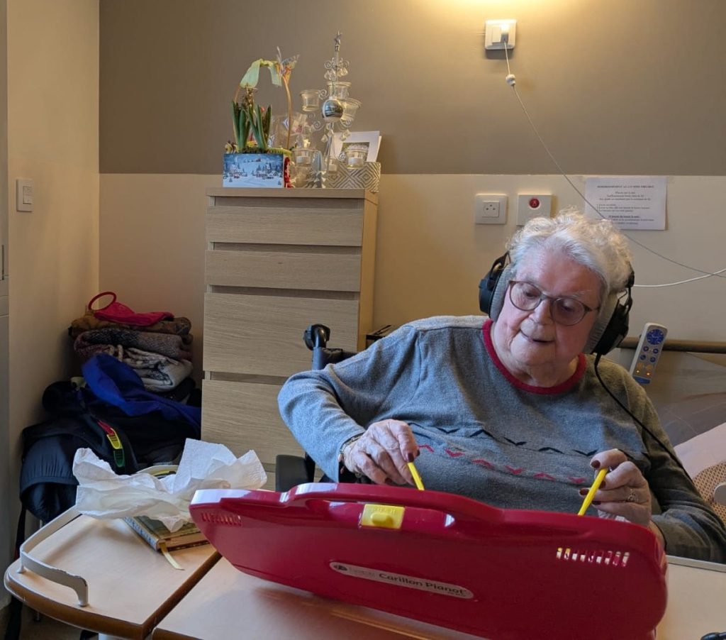 Fin 2024 et pendant 5 mois, Les Harmoniques du Néon ont été accueillies en résidence à l’EHPAD Jeanne de Chantal à Crémieu (38). Anne-Laure Pigache, Laurian Houbey et Anne-Julie Rollet y ont été accueillies par Rim, animatrice et aide-soignante, elles ont dormi dans la chambre 321, passé du temps à la machine à café du 1er étage, dans les salons, les couloirs, la chapelle, les chambres, les salles à manger… Et se sont glissées dans le tempo du lieu. Puis elles ont visité la morgue et échangé sur la mort avec plusieurs personnes. A la fin de leur résidence, elles ont promené dans les différents étages de l’EHPAD un chariot mobile sur lequel elles avaient installé un jukebox. Pendant trois jours, elles ont écouté avec les résidents et les soignantes les enregistrements qu’elles y avaient captés. Une pièce sonore est née de cette résidence hors-du-commun.